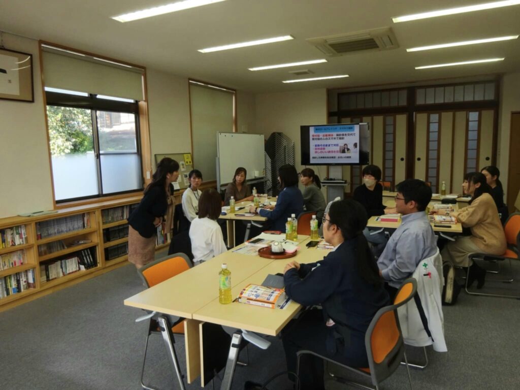 新入社員からベテランの皆さんまで、グループワークも行いながら進めます。あらかじめアンケートでお聞きした困ったことや質問も共有し、回答したり、全員で考えながら進めます。そのため、その企業ならではの研修になるのです。